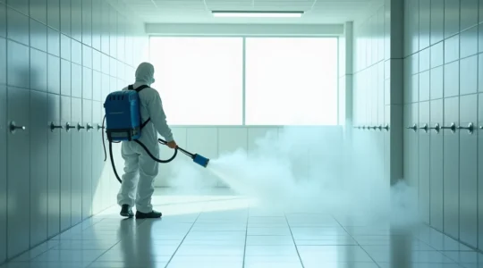 Thermal fogging generates ultra-fine droplets that remain suspended in air before settling on all surfaces within an enclosed space. This provides genuinely comprehensive coverage, reaching locations that spray bottles and wiping cannot access. The process requires facility evacuation, adequate ventilation time before re-entry, and compatible chemical products formulated for aerosolization. Incompatible products can damage HVAC systems, leave sticky residues, or create respiratory irritants.